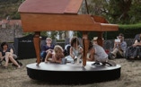 Cette installation crée un entre-sort à l’air libre, visible des autres spectateurs et passants, mais bien délimité, garantissant une certaine intimité .