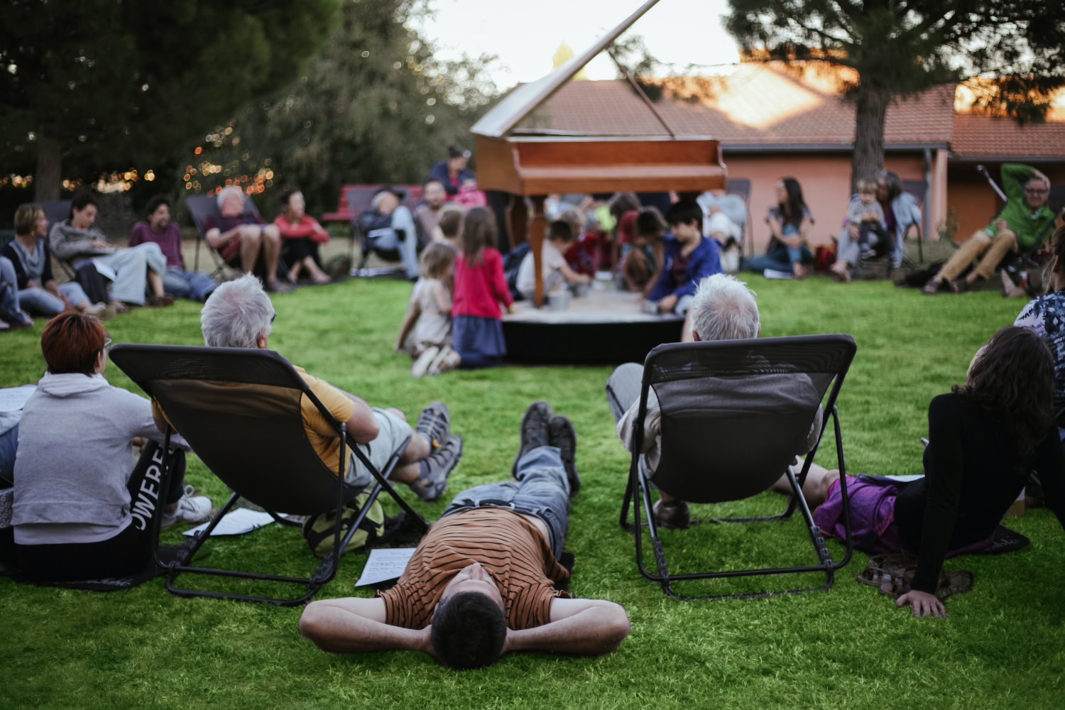 L’autre pari, c’est bien sur, d’offrir un moment de décontraction aux parents, non seulement dans une position de repos, confortablement posé dans un transat, mais aussi dans un moment de relâchement de leur surveillance, leurs enfants étants devant eux, sécurisés dans le cocon de notre arène de transats. Si la magie opère, le spectateur se laissera aller à fermer les yeux et profiter pleinement de la beauté des Variations Goldberg de Jean Sebastien Bach.